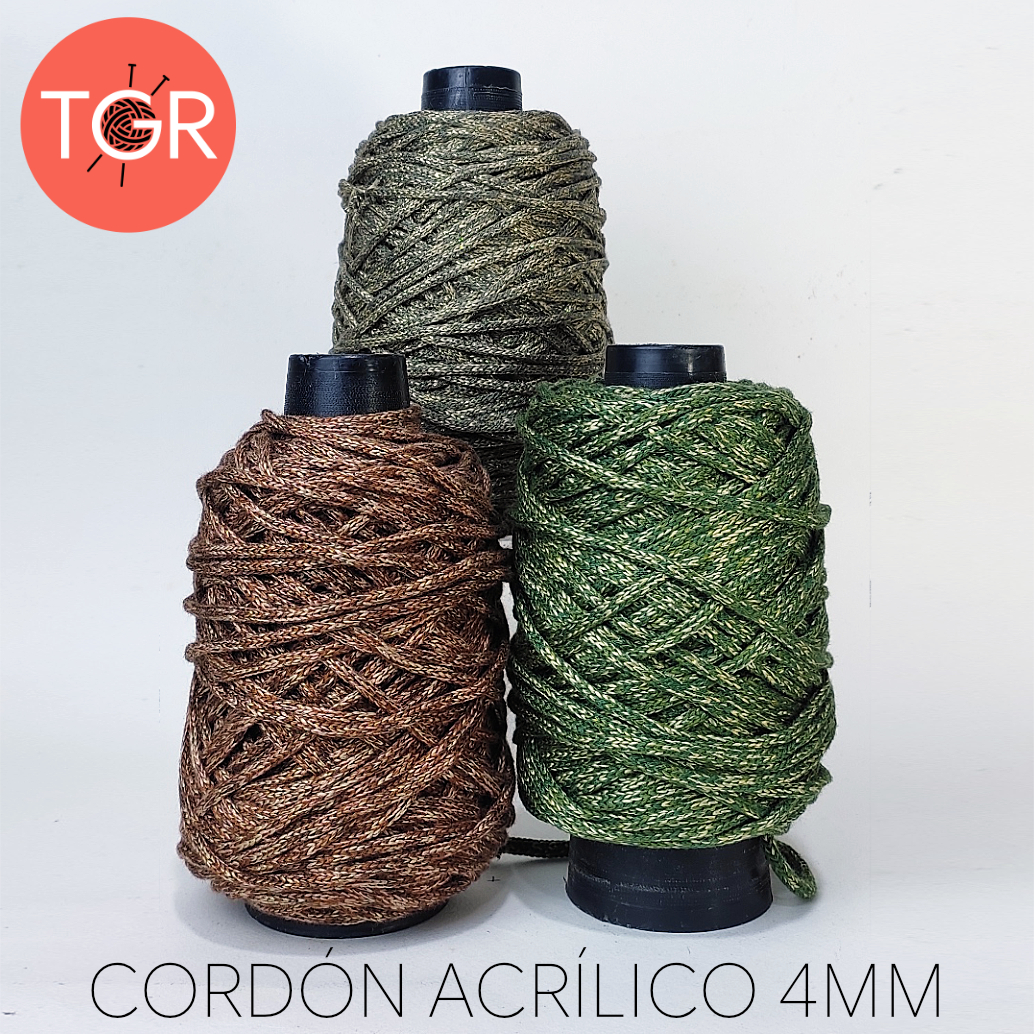 DESCRIPCIÓN: Cordón para tejer tipo tricot en acrílico, acrílico + lurex, seda, y poliéster, de 4mm de espesor.